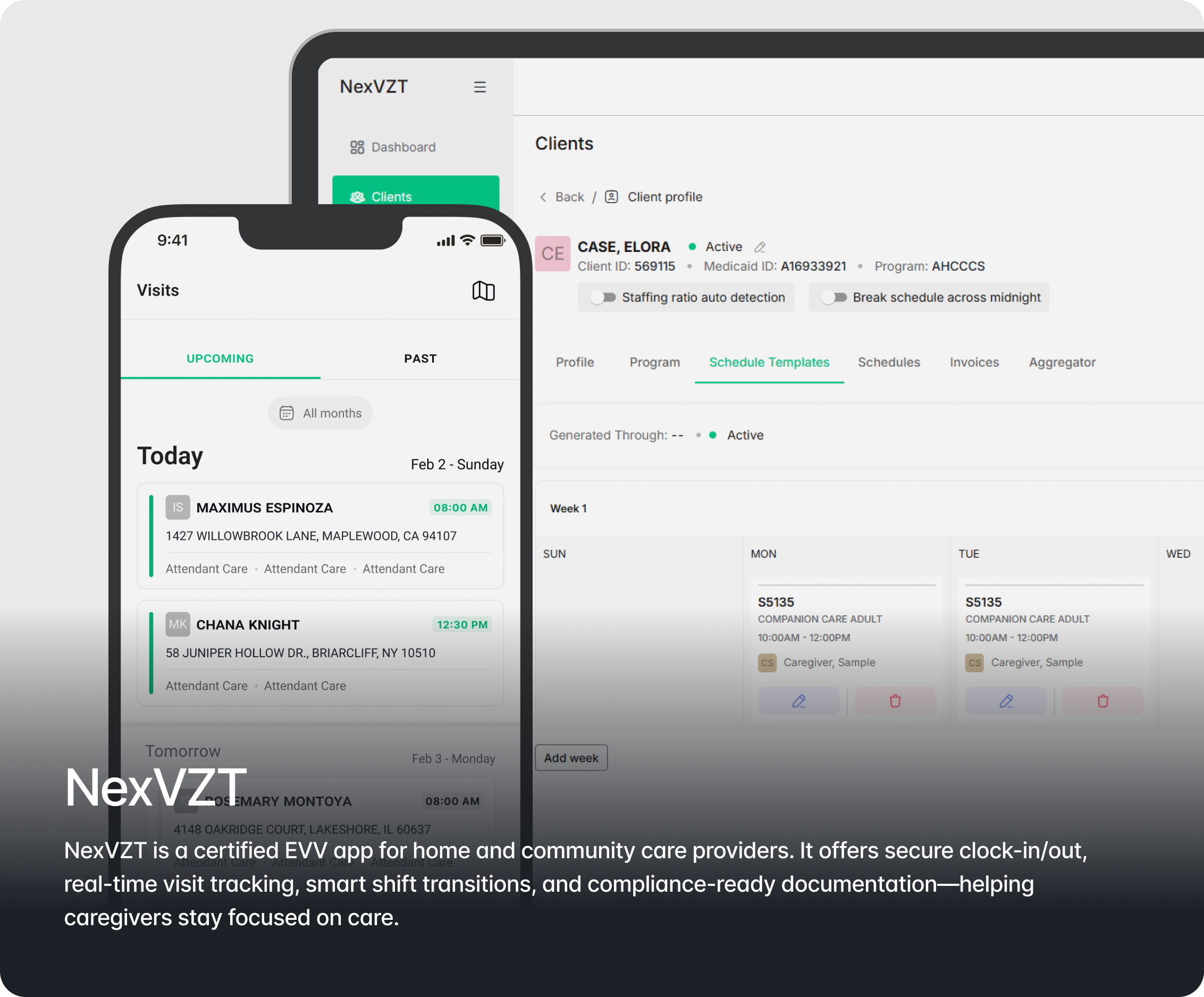Our approach goes beyond building technology: we focus on creating tools that empower caregivers, simplify operations, and drive better outcomes for patients. From electronic visit verification (EVV) and automated scheduling to claims processing and analytics, our solutions are designed with both people and performance in mind.